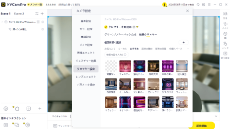 背景を自由に変更できる機能は、個人情報を守るだけでなく、視覚的な演出としても活用できます。yycamproでは、静止画や動画の背景、3D背景など多彩な選択肢が用意されています。これにより、ユーザーは自宅からでも映画のワンシーンのような映像を作り出すことが可能です。