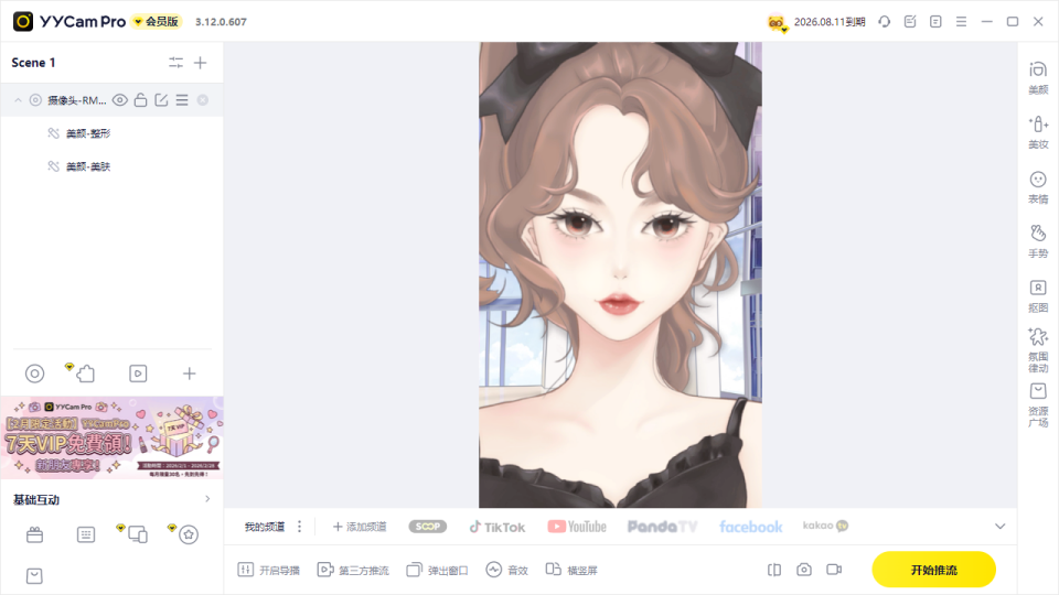 - 打开电脑端YYCam Pro,进入「摄像头」管理界面。