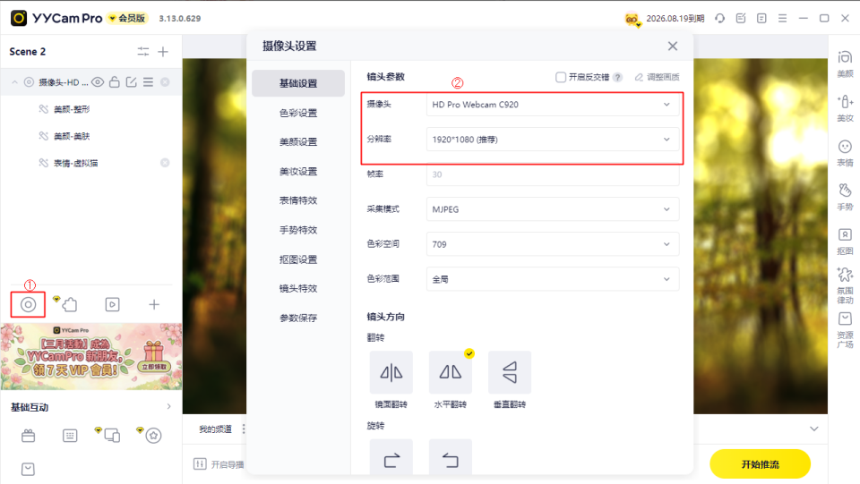 - 启动 YYCamPro ,设置合适的分辨率与帧率,确保画面稳定。