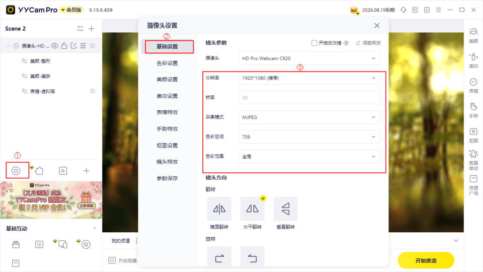1. 在 YYCam Pro 中配置虚拟摄像头输出