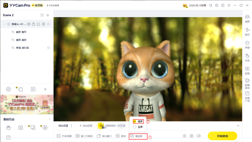 注意:设置前请先关闭 Discord,否则 YYCam Pro 中可能无法显示横屏/竖屏相关选项。若关闭 Discord 后仍未显示该选项,请重启 YYCam Pro 后再试。