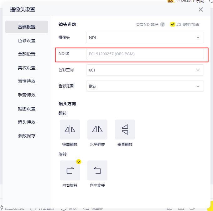 - 开启 “NDI 输出”功能。