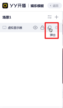 - 若不小心关闭了交互界面,点击场景源中虚拟显示器条目右侧的弹出按钮可再次打开。