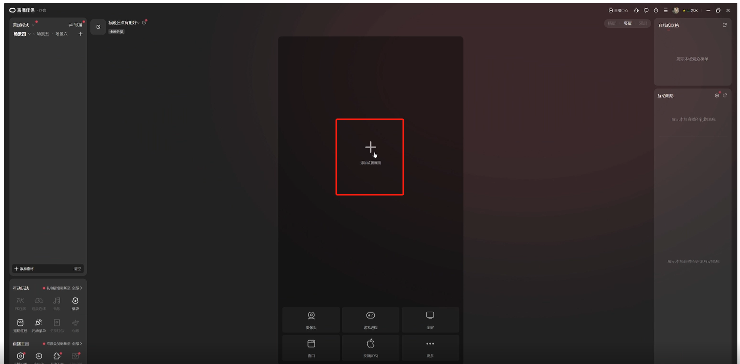- 在直播伴侣中点击添加直播画面,选择添加摄像头。
